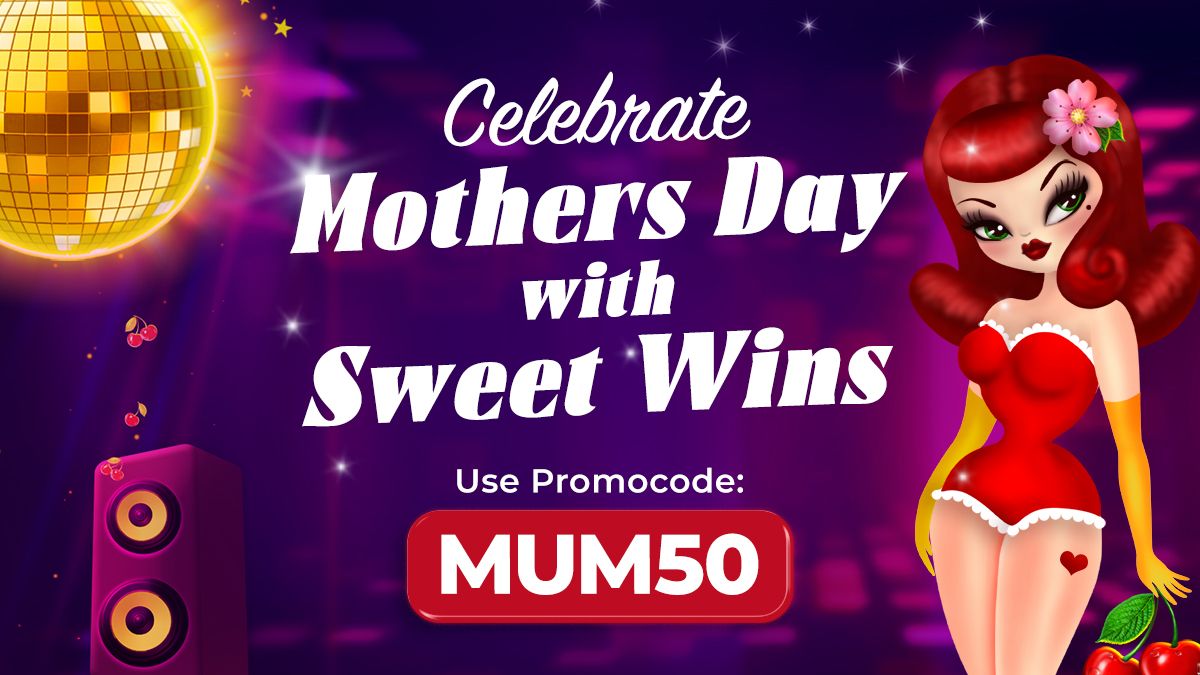 Deposit £100+, enter promo code MUM50, and get a 50% bonus + 50 freespins on the fruity and fabulous Miss Cherry Fruits slot – only this weekend, March 29–30!