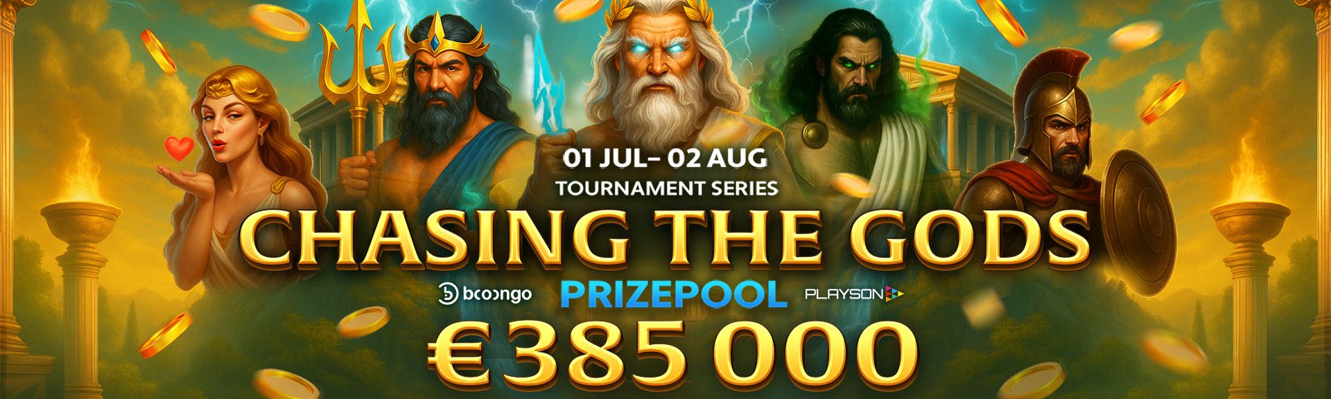 Play selected Booongo and Playson games throughout July and rise through the leaderboards. Four unique phases. One Godly Challenge. 385,000 EUR in total prizes.
